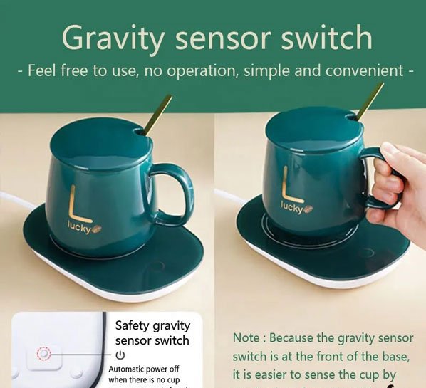 هیتر به وسیله سنسور وزنی که در زیر آن تعبیه شده روشن شده و شروع به گرم شدن تا دمای 55 درجه می کند و گرمای نوشیدنی شما را در هر درجه حرارتی که باشد جفظ می کند.